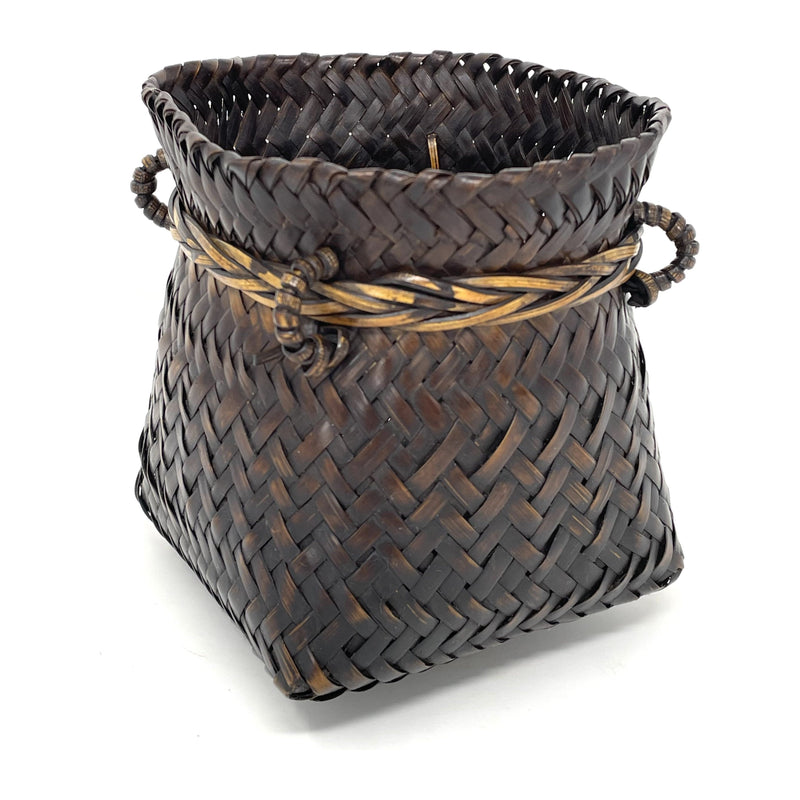 Vintage Woven Bamboo Shoulder Bag with Dark Brown Patina from the Philippines